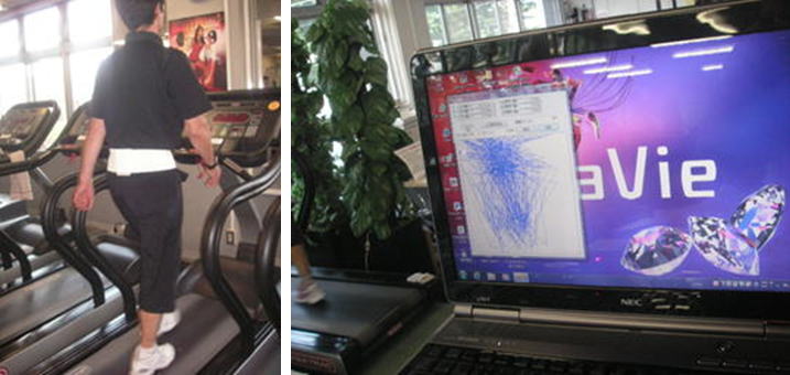 人体の動作測定というと「モーションキャプチャ」のような、大きな測定器が頭に浮かびます。 当事務所では腰部に測定器を取り付け、身体の動作やバランスを測定解析しております。